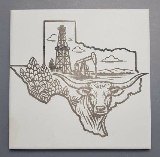 Texas Pride - Bluebonnets, Longhorns, Oil Wells, Hill Country and Plains - Trivet Hot Plate